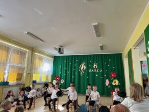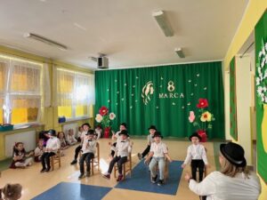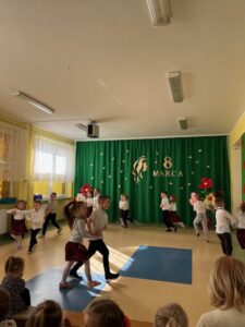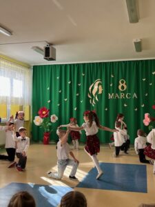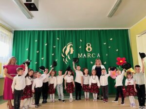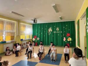 Przedszkolaki zaprezentowały wyjątkowy program artystyczny – były piosenki, wierszyki oraz wesołe tańce, które sprawiły, że na twarzach wszystkich pań pojawił się uśmiech. Dzieci z dużą starannością przygotowały swoje występy, a ich entuzjazm i radość były najlepszym prezentem tego dnia.
