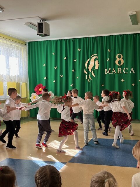 Przedszkolaki zaprezentowały wyjątkowy program artystyczny – były piosenki, wierszyki oraz wesołe tańce, które sprawiły, że na twarzach wszystkich pań pojawił się uśmiech. Dzieci z dużą starannością przygotowały swoje występy, a ich entuzjazm i radość były najlepszym prezentem tego dnia.