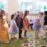 Od samego rana w przedszkolu panowała niezwykła atmosfera – sale zostały udekorowane kolorowymi balonami, serpentynami i błyszczącymi girlandami, a na korytarzach można było spotkać księżniczki, superbohaterów, wróżki, zwierzątka i inne bajkowe postaci.