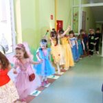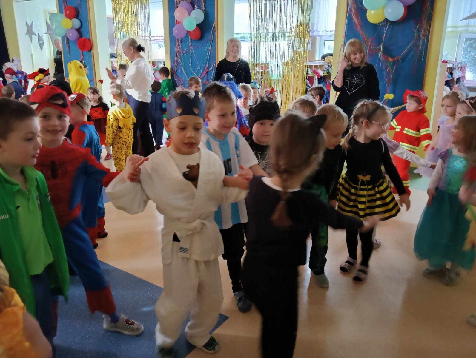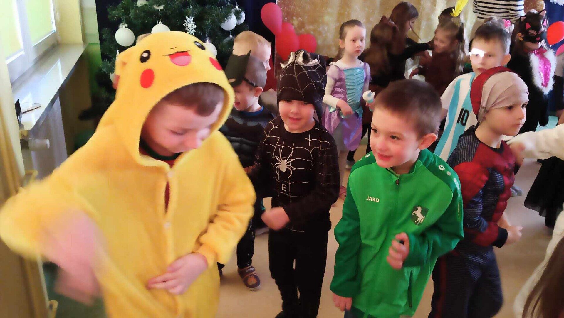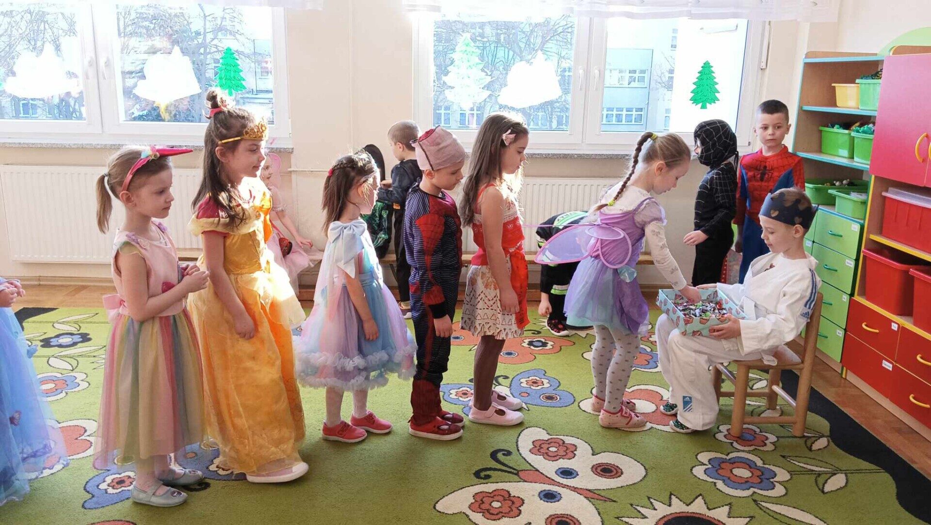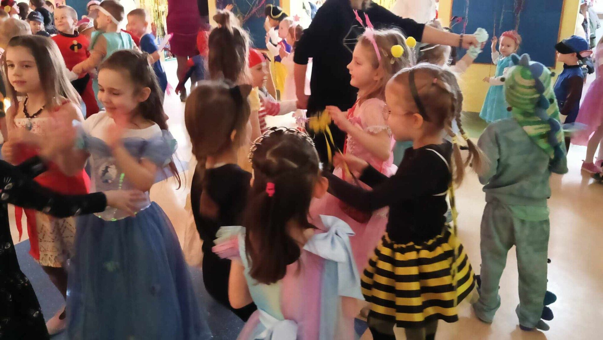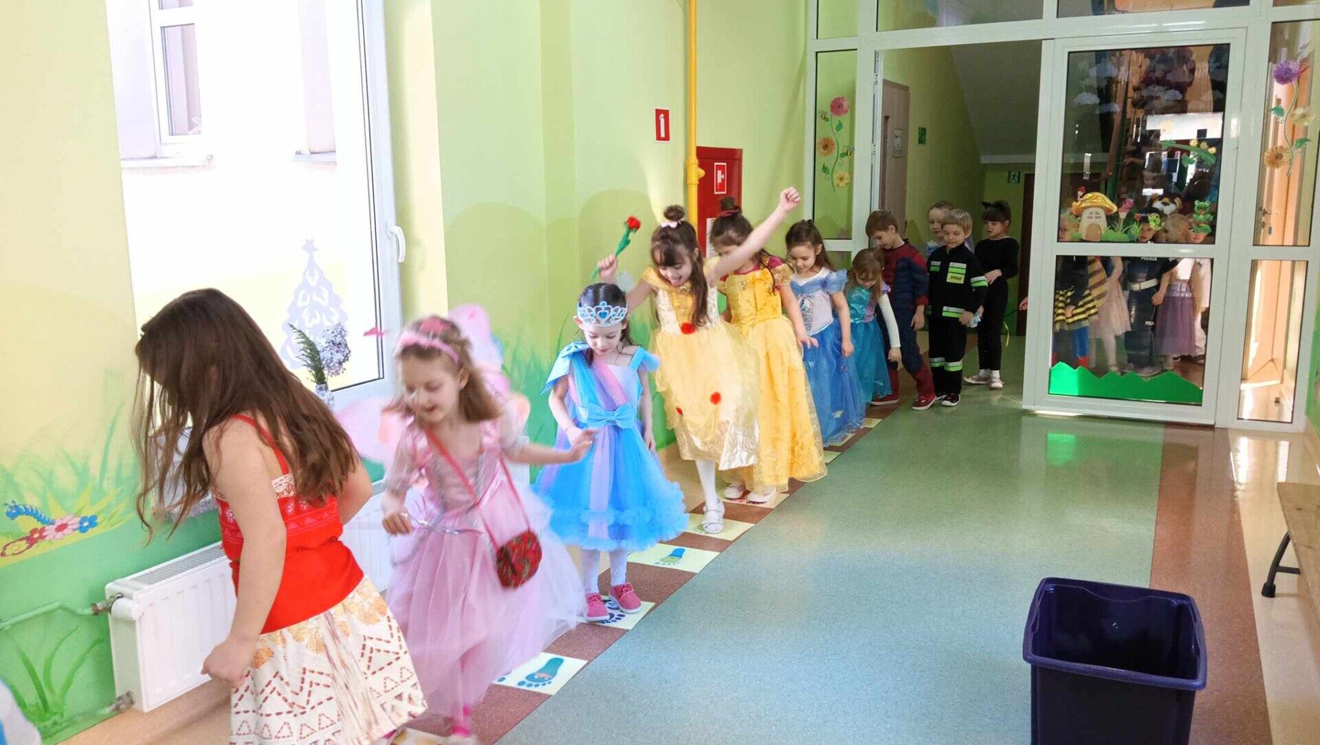 Od samego rana w przedszkolu panowała niezwykła atmosfera – sale zostały udekorowane kolorowymi balonami, serpentynami i błyszczącymi girlandami, a na korytarzach można było spotkać księżniczki, superbohaterów, wróżki, zwierzątka i inne bajkowe postaci.