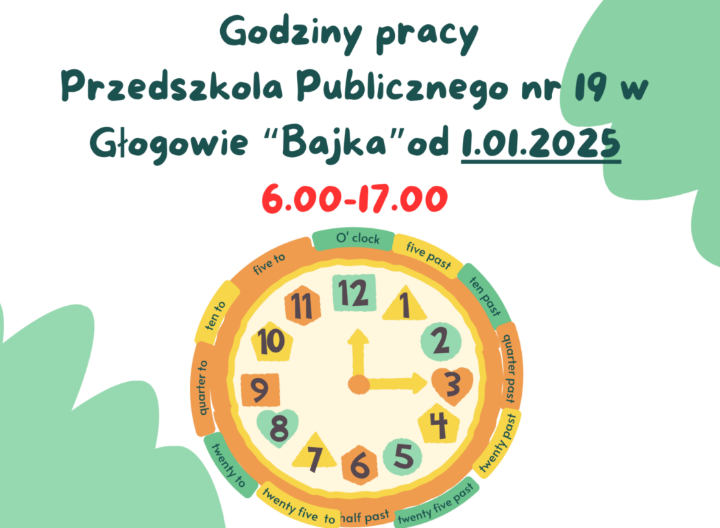 Drodzy Rodzice Od 01.01.2025 r. wydłużamy czas otwarcia przedszkola do godziny 17.00