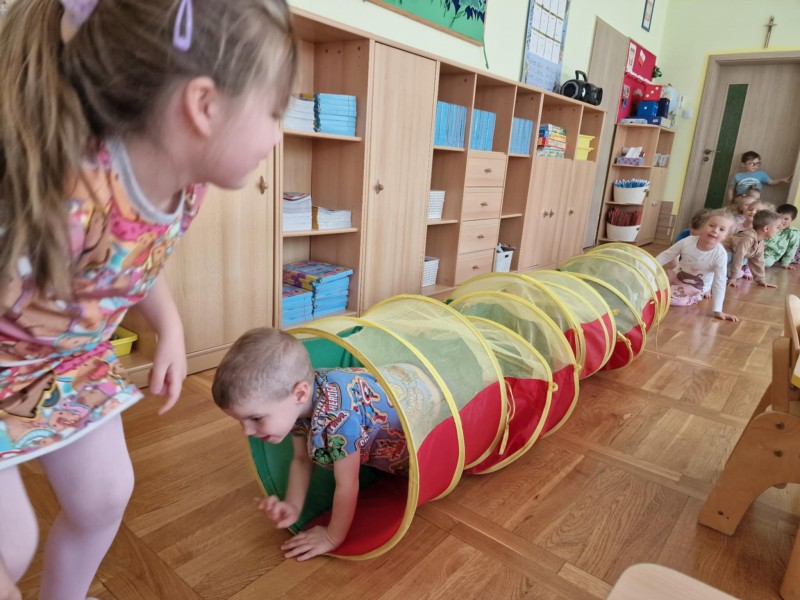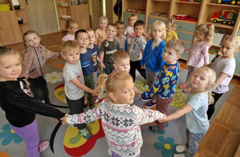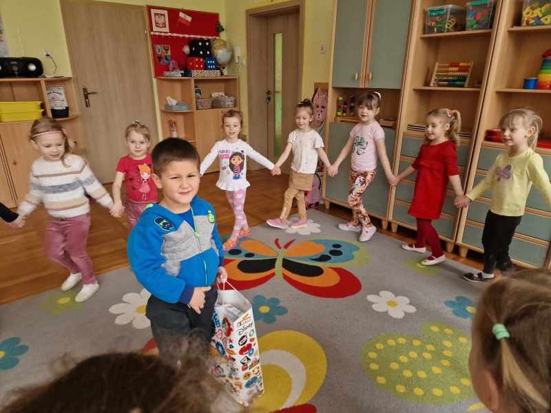 Więc bawimy się od rana, radość w sercu nieprzerwana, w przedszkolu każdy znajdzie coś…