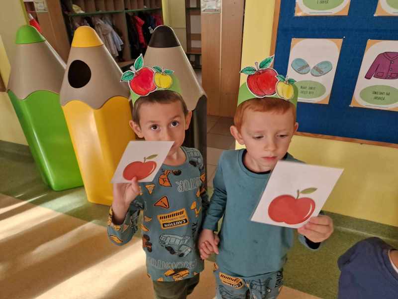 I potoczył w naszą stronę jabłko duże i czerwone.”