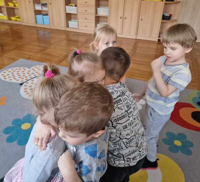 Wspólna zabawa, to najlepszy czas, wszyscy się śmieją, nikt nie jest sam!Klocki, kredki, lalki wkoło, każdy bawi się wesoło!