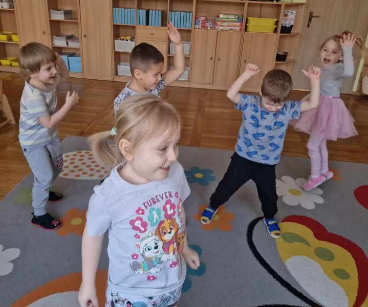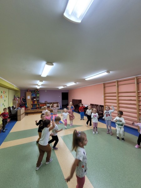 Raz, dwa, trzy, tupiemy w rytm, klaszczemy w dłonie, hop i skok,