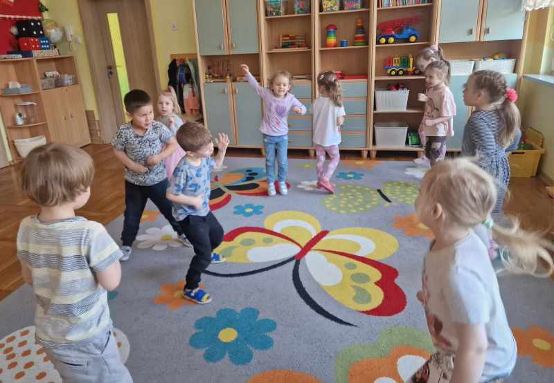 „Dzisiaj jestem w przedszkolu, razem z nami skacze stół, krzesła tańczą, misie grają a Dzieciaki śpiewać zaczynają!
