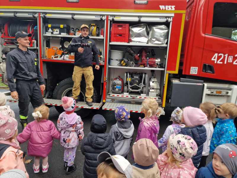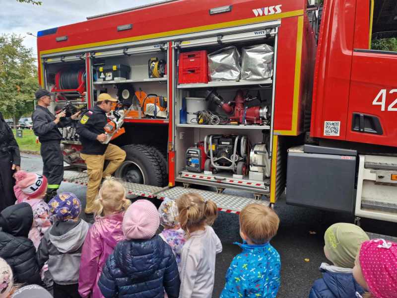 Syreny błyskają, mundury migoczą, mali strażnicy bezpieczeństwa uśmiechem się toczą.