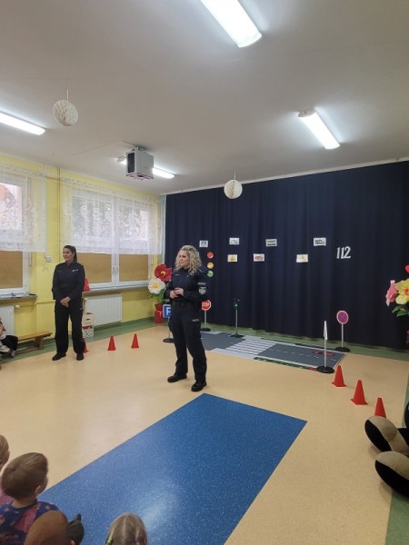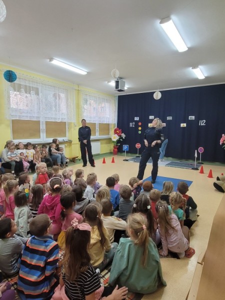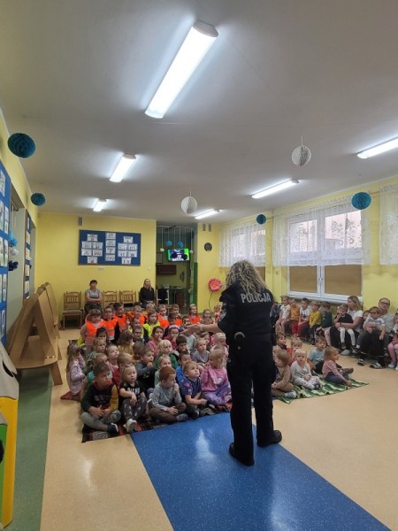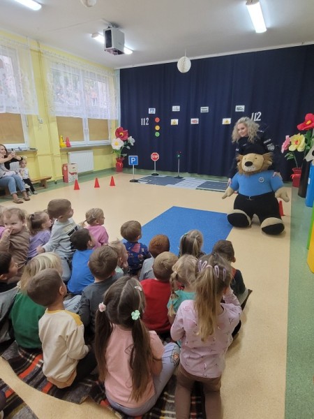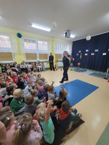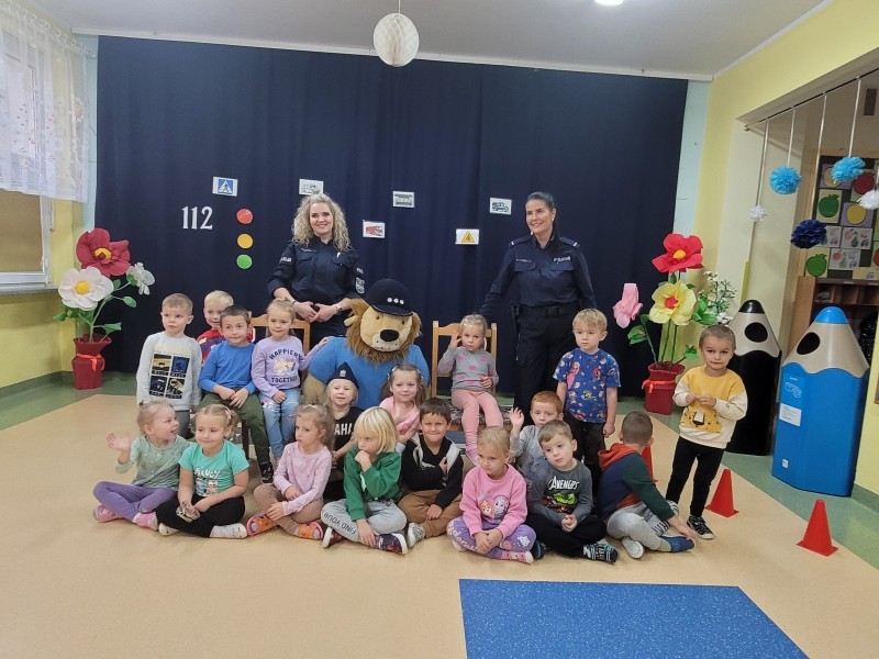 „Policja w przedszkolu, dzień pełen radości, nauka przez zabawę wśród dziecięcej gościnności.