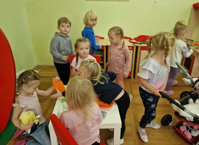 Tak w przedszkolu, gdzie bajki się łączą, zwierzęta i dzieci w zabawie się plączą!
