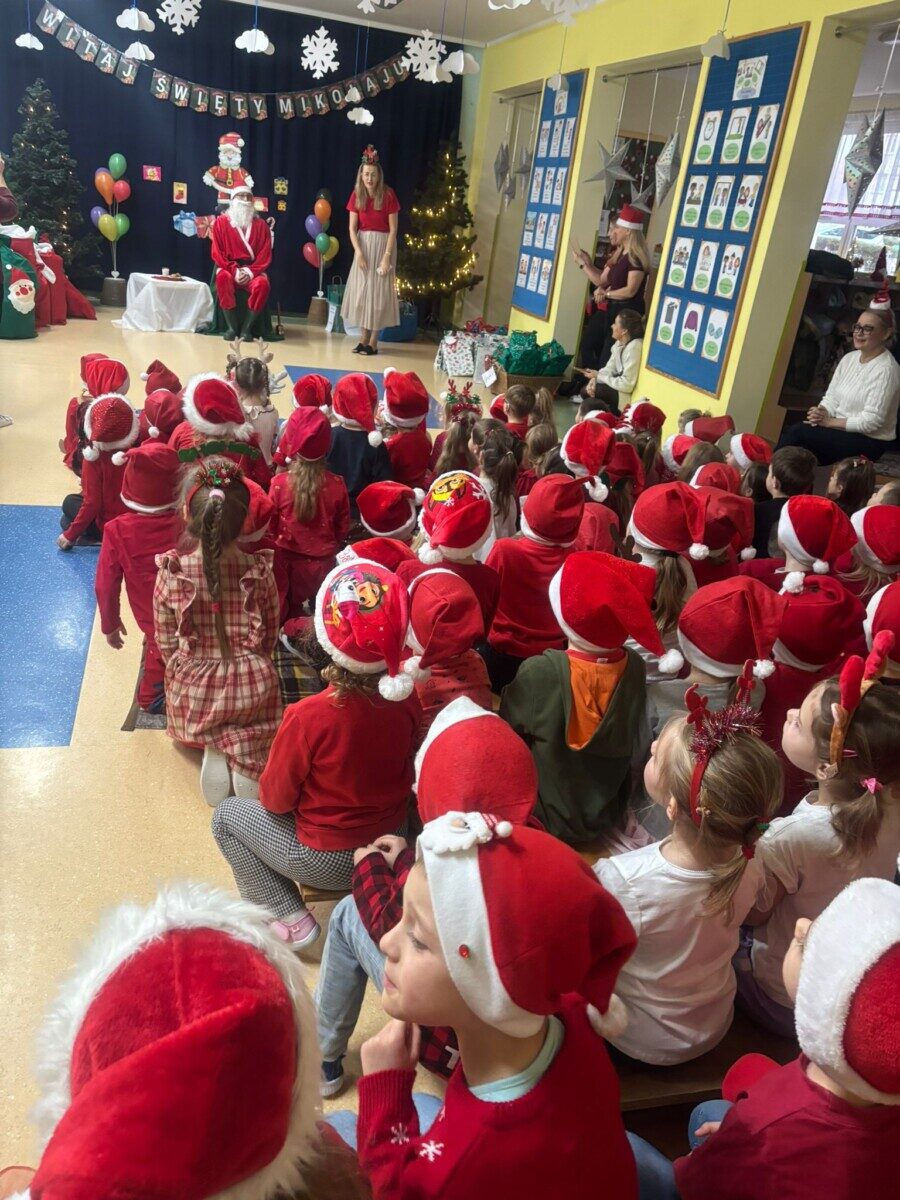 Dzieci, ubrane w czerwone czapki, przywitały Mikołaja wesołymi piosenkami i wierszykami, które wcześniej pilnie ćwiczyły. Święty Mikołaj, w swoim tradycyjnym stroju i z workiem pełnym prezentów, opowiedział o swojej podróży.