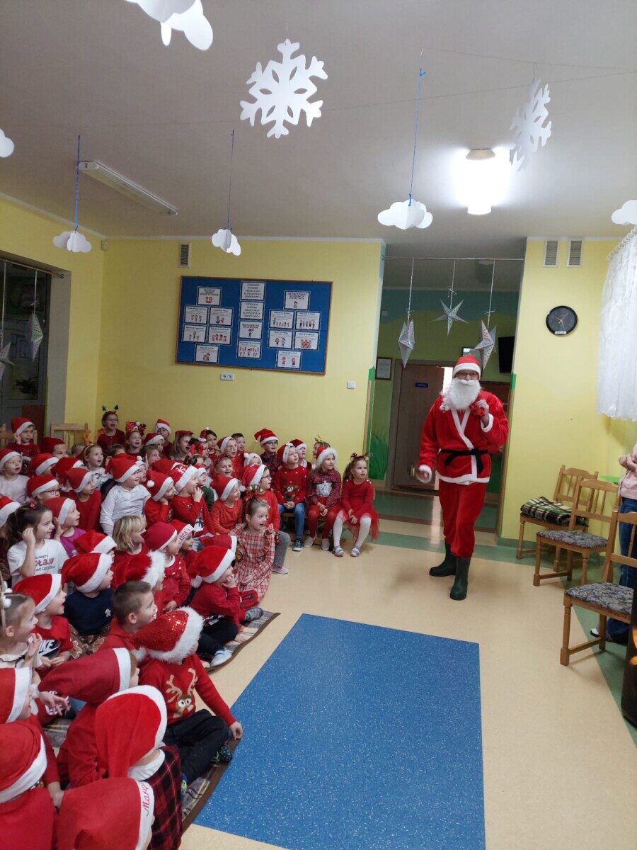6 grudnia w naszym przedszkolu odbyło się wyjątkowe spotkanie, na które wszystkie dzieci czekały z niecierpliwością – odwiedziny Świętego Mikołaja! Już od rana w przedszkolu panowała świąteczna atmosfera. Sale były pięknie udekorowane, a w powietrzu unosił się zapach pierniczków.