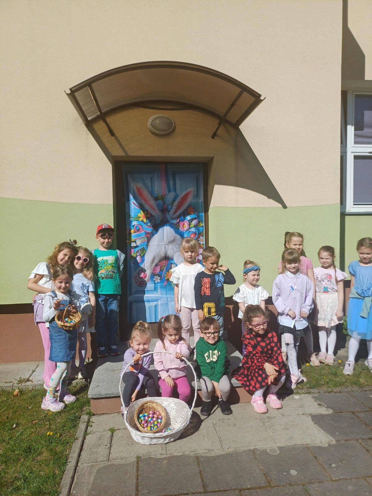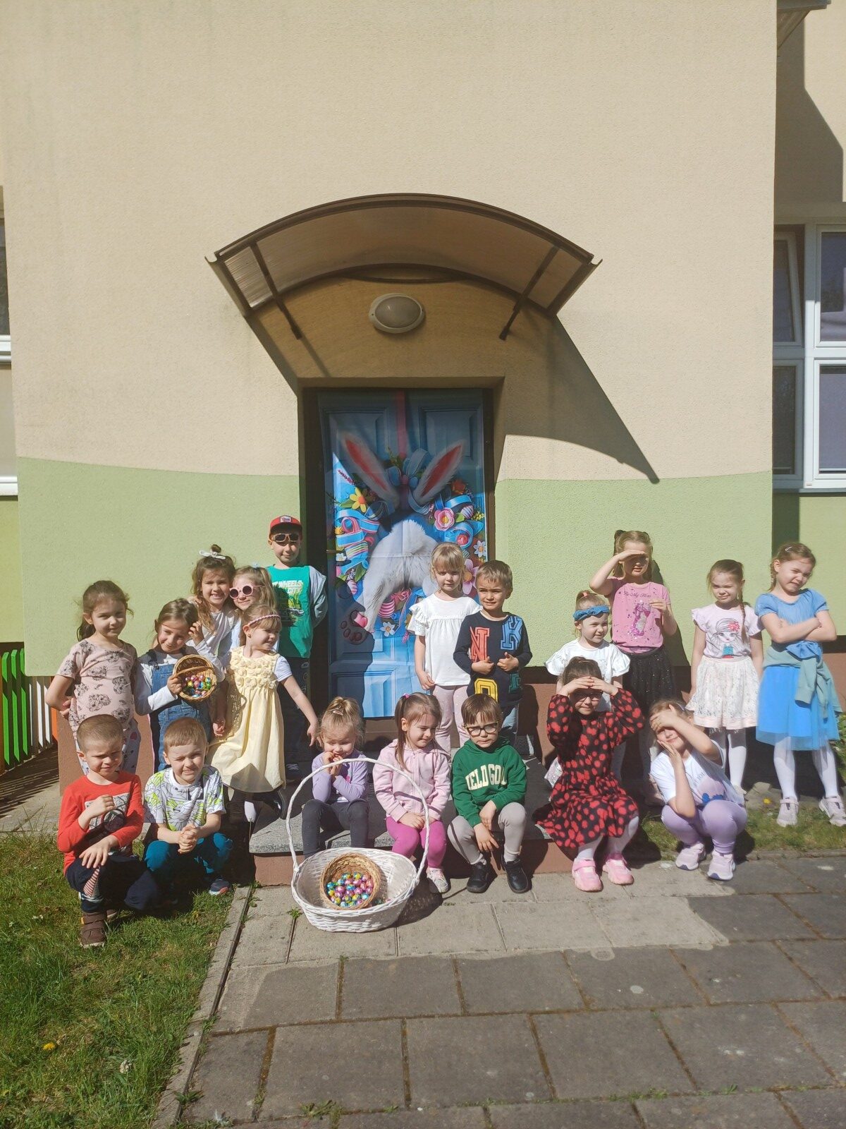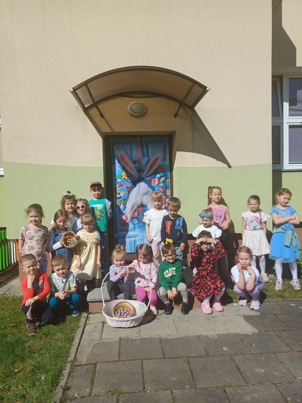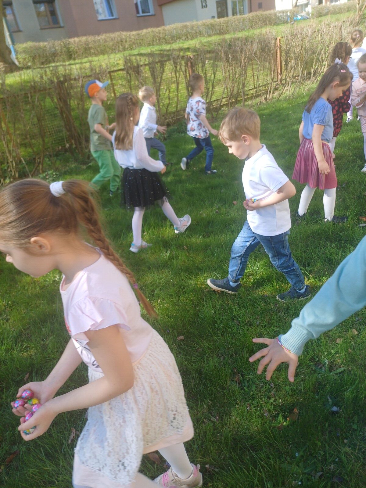 Po występnie wszyscy udali się na plac przedszkolny, aby szukać czekoladowych jajeczek, które pochował Zajączek Wielkanocny:)